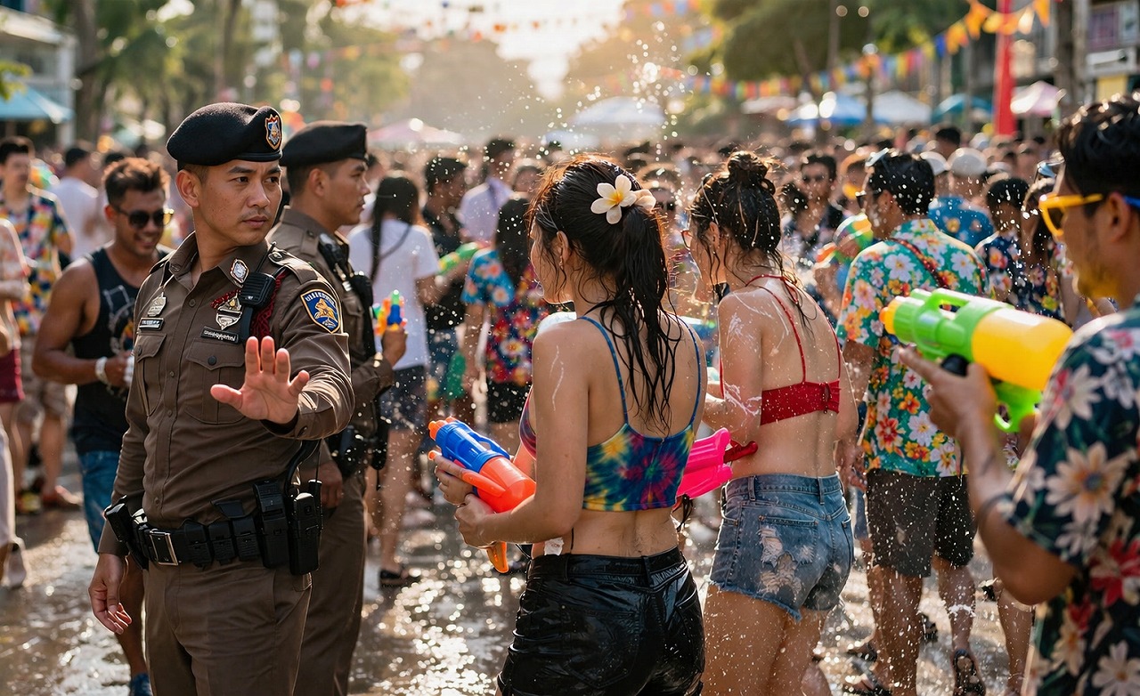 タイ北部警察第5管区は、ソンクラーン期間中の治安維持に向け、露出の多い服装や同意のない身体接触が「わいせつ行為」として処罰対象になると警告した。
