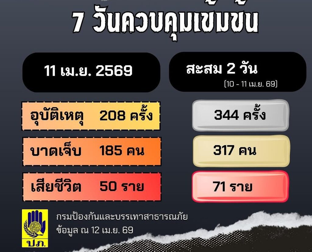 タイ道路安全対策センター(RSOC)は、4月11日だけで50人が死亡したと発表した。