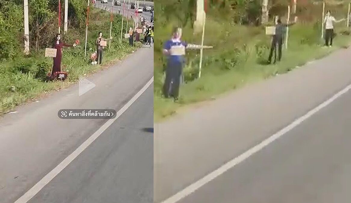 冗談ではない! タイ東北部、カーブに並ぶ人間看板が物議。「怖すぎる」と不評で撤去。