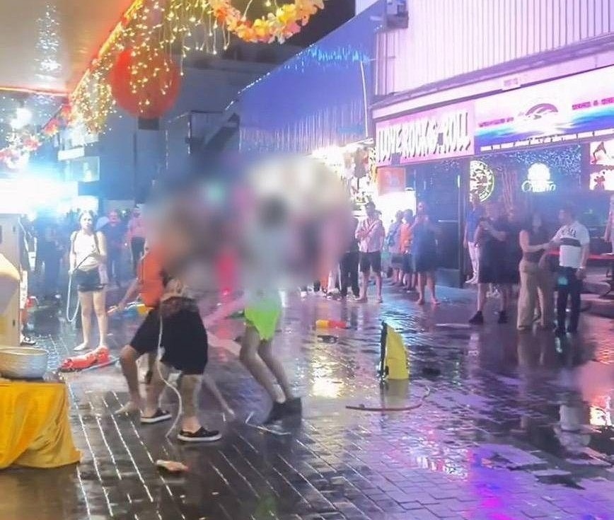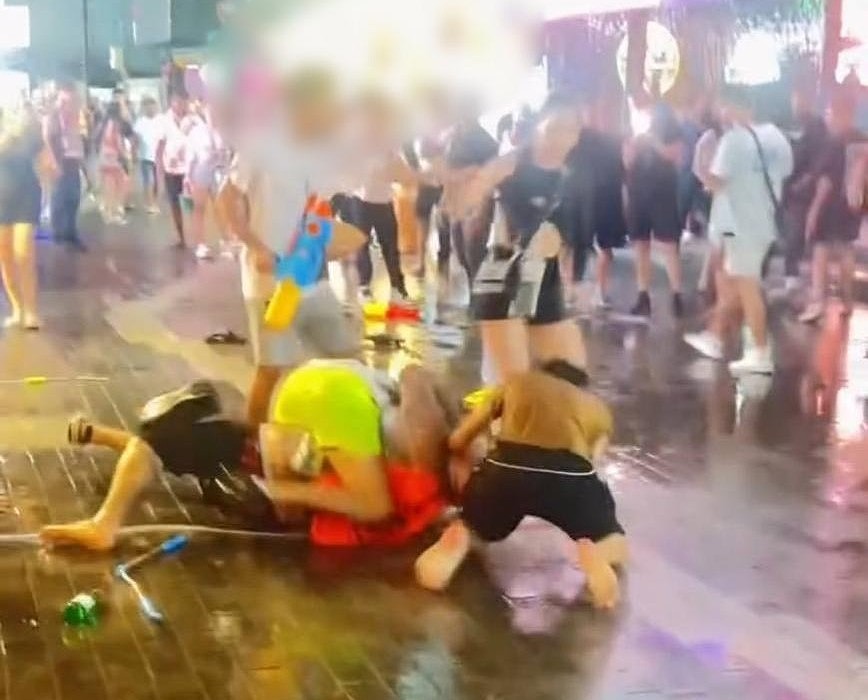 映像は4月16日夜、観光地ウォーキングストリートで撮影されたとみられ、水の掛け合いがきっかけとなり口論へ、その後、暴力沙汰に発展したとされている。
