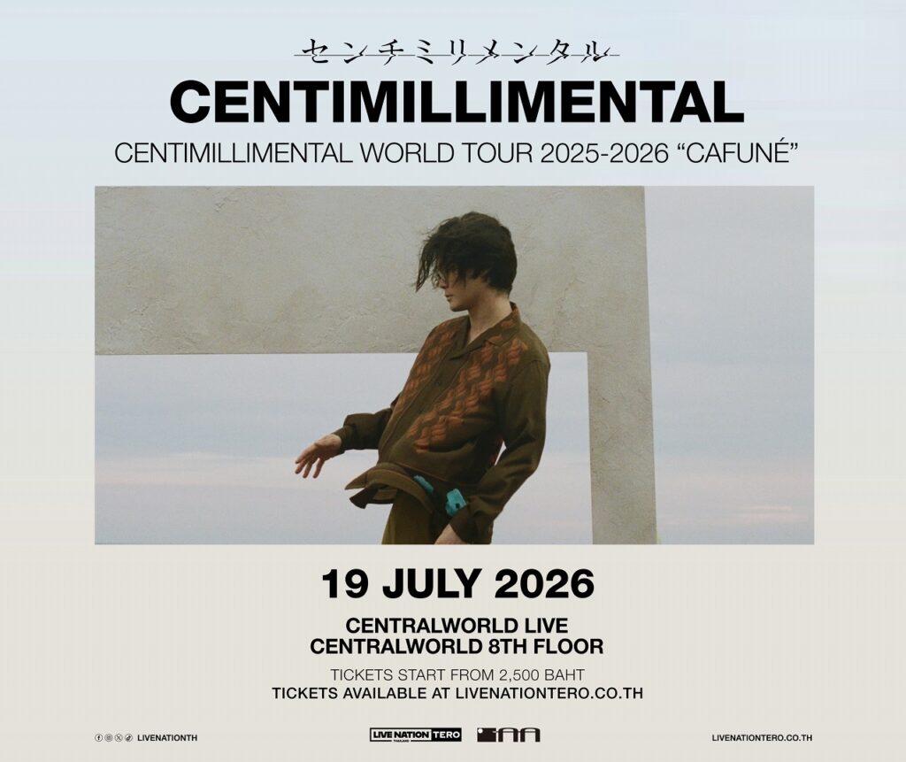 作詞、作曲、編曲、歌唱、ピアノ、ギター、プログラミングのすべてを担う温詞(あつし)によるソロプロジェクト・Centimillimentalによるワールドツアー「Cafuné」のバンコク公演が、2026年7月19日にバンコクのセントラルワールド8階「CentralWorld Live」で開催されることが発表された。