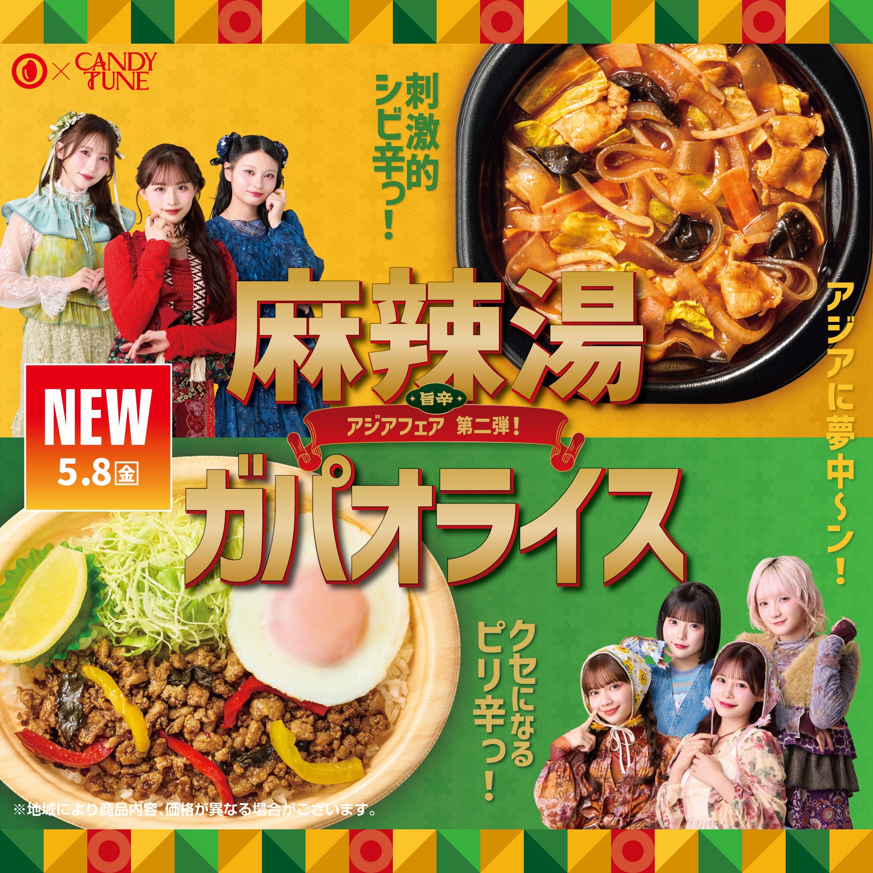 また、“旨辛アジアフェア第1弾”に引き続き、7人組アイドルグループ「CANDY TUNE」が登場する新ビジュアルを公開いたします。今後の展開については、続報をぜひお待ちください。