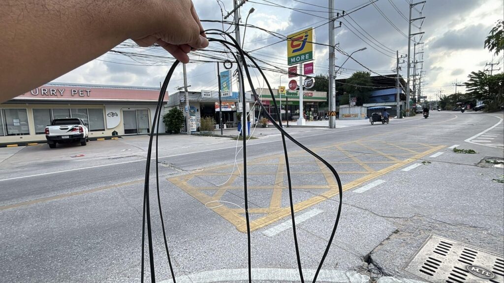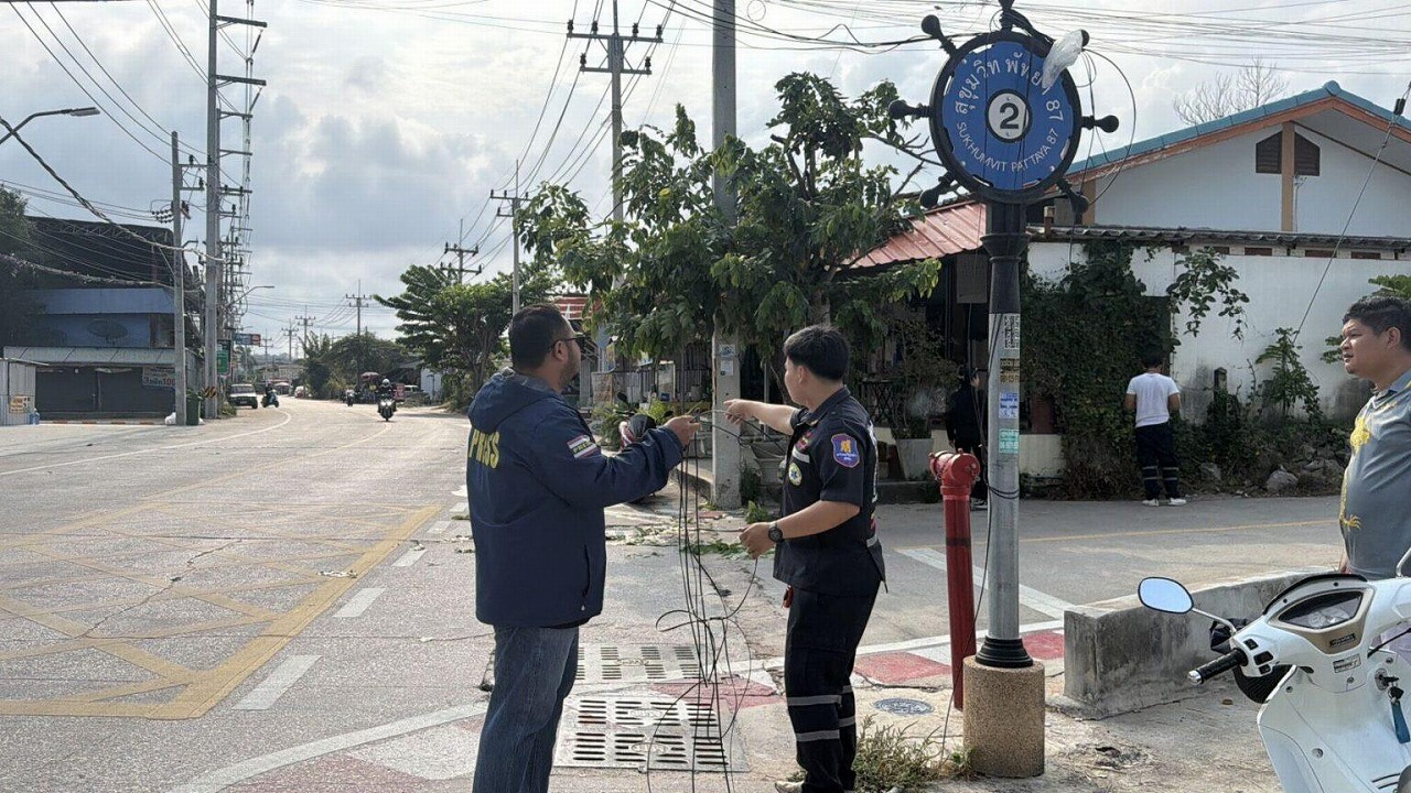 パタヤで4月23日朝、道路上に垂れ下がっていたケーブルにバイクが接触し、男性(27)が重傷を負う事故が発生しました。