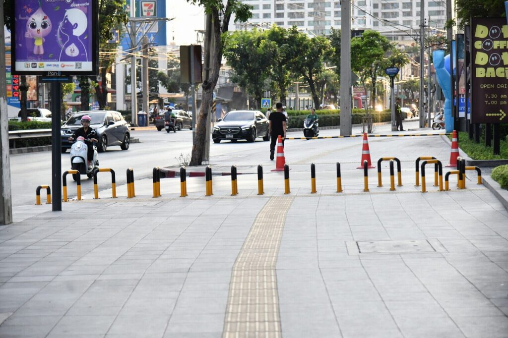 バンコク都は、歩道上を走行するバイク対策として、クロントゥーイ区で金属製バリアの設置を開始した。
