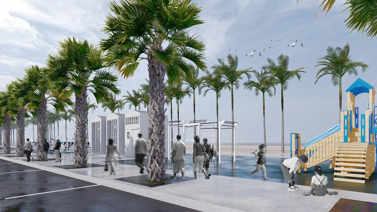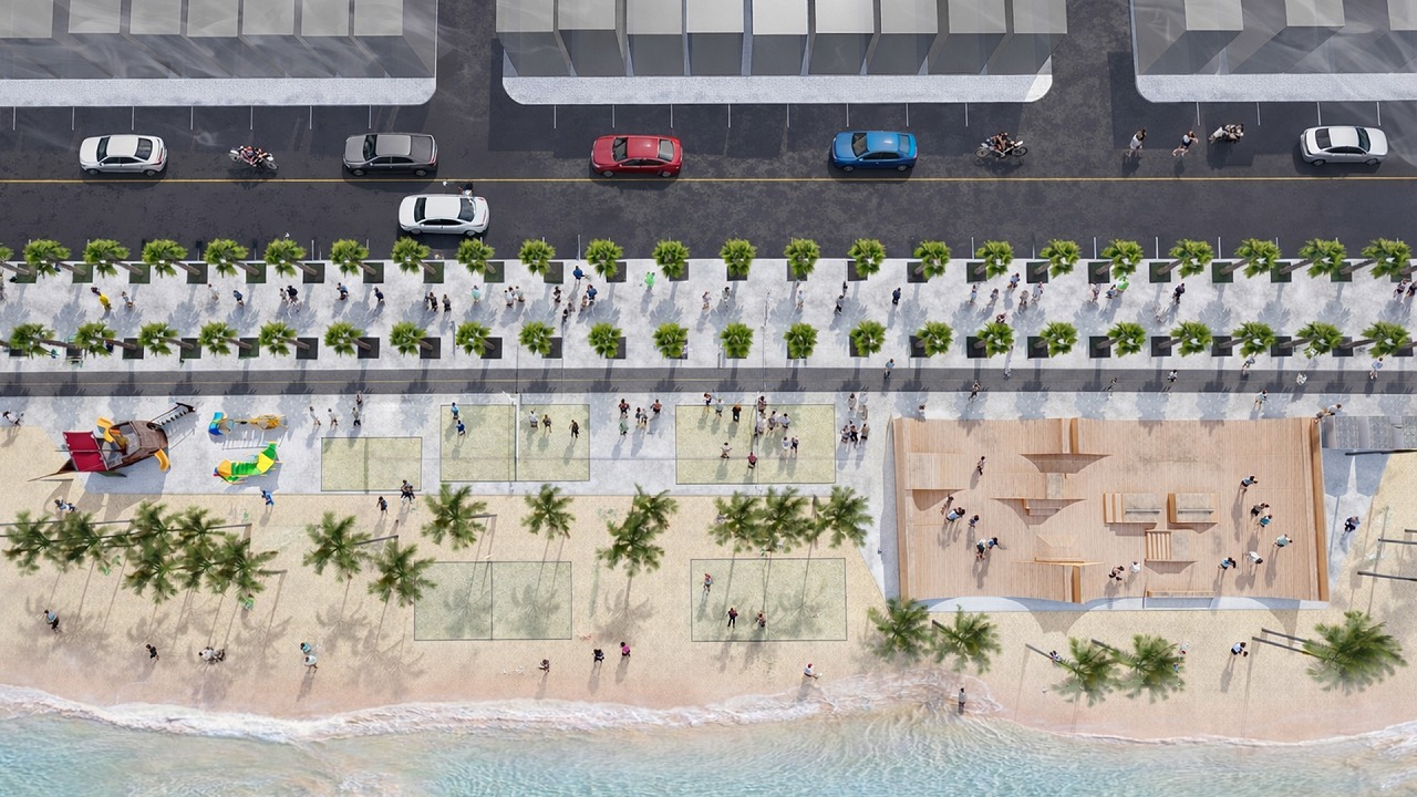 計画では歩道の拡張や景観の向上に加え、ビーチバレーコートやスケートボードエリア、子ども向けの遊び場、屋外フィットネススペースなど、多様なアクティビティに対応した施設の整備が盛り込まれている。