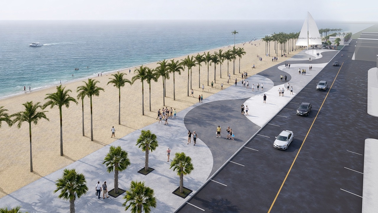 今回公表されたのは、「ジョムティエンビーチ沿い遊歩道」の再整備イメージで、既存の歩道を改良し、より快適で多機能な公共空間へと刷新する内容となっている。