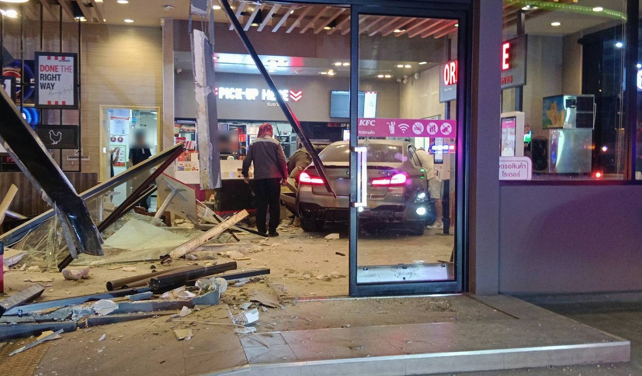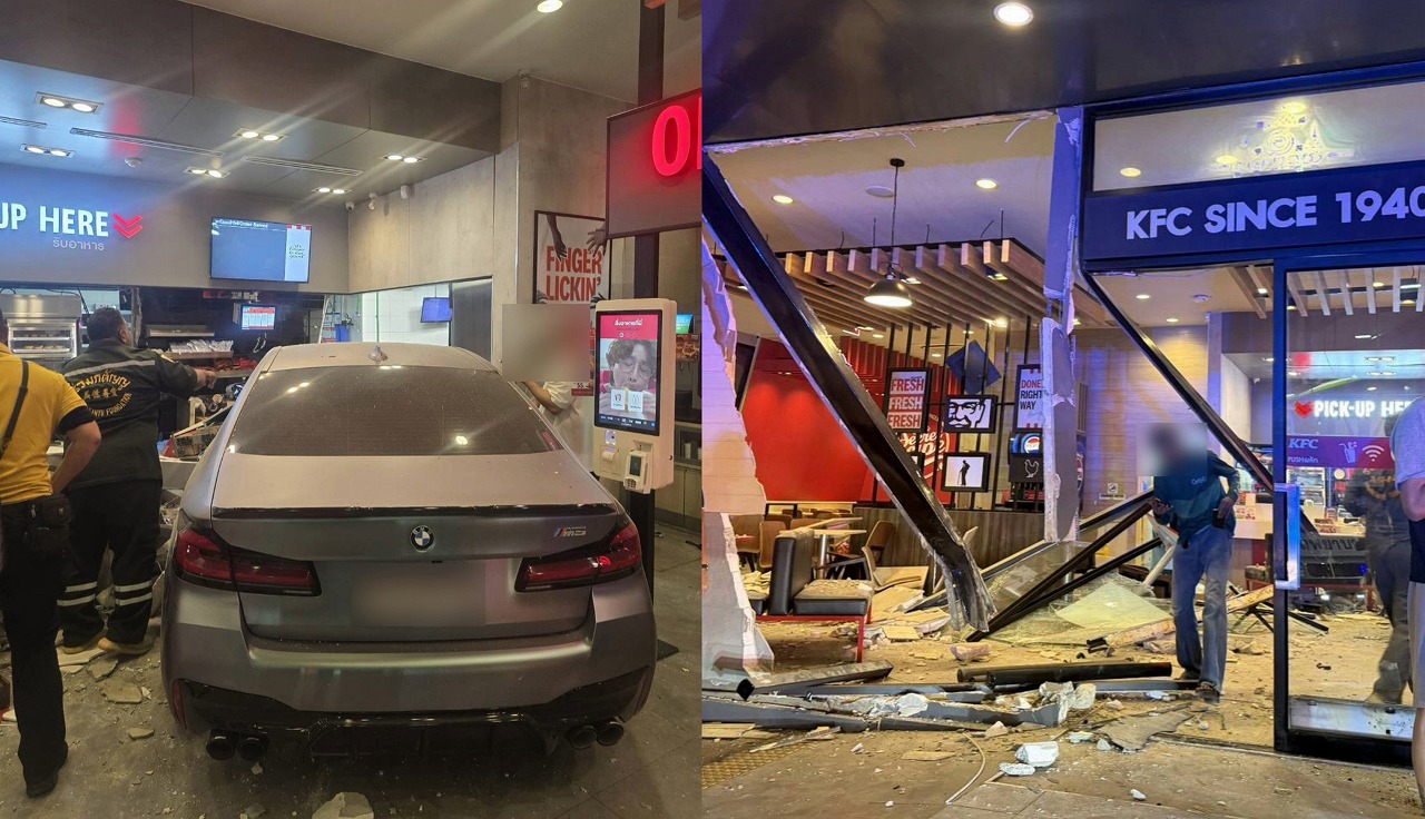 4月25日午後8時9分ごろ、バンコク・スクンビット62通りのバンチャックガソリンスタンド内にあるKFC店舗内へ、BMWの乗用車が突っ込む事故が発生したとの通報が入った。