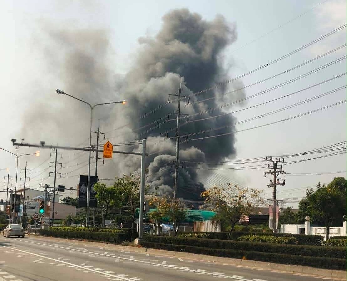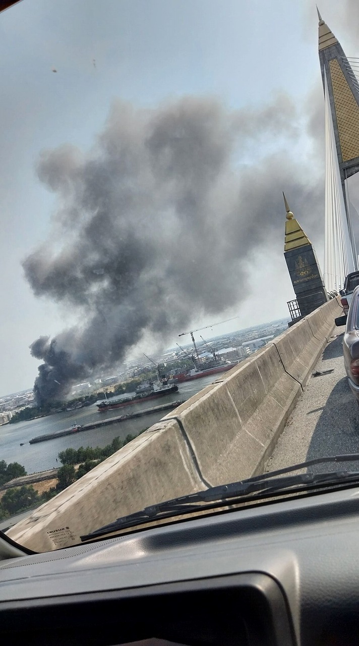 - 黒煙がプミポン橋周辺覆う! サムットプラカーン工場火災、消火活動難航中。