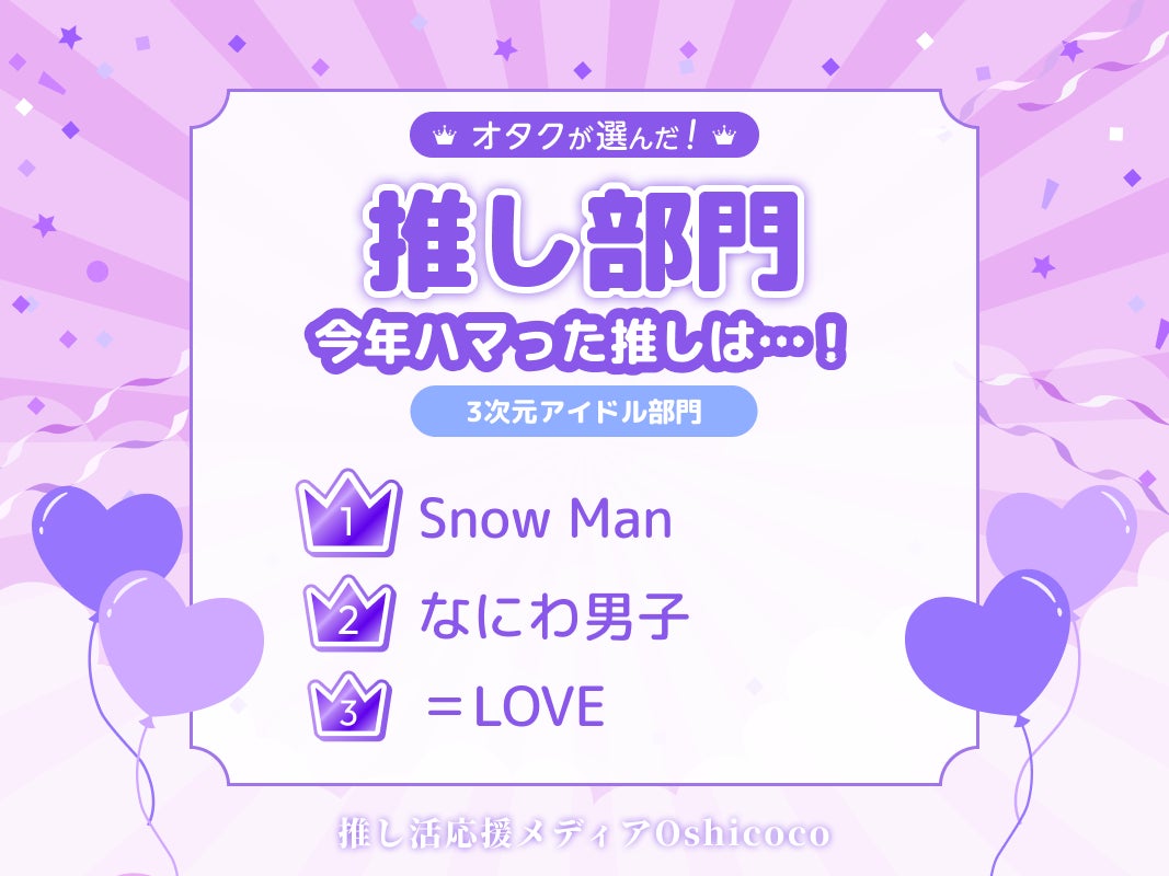 3次元アイドル部門は1位「Snow Man」2位「なにわ男子」3位「=LOVE」という結果になりました。