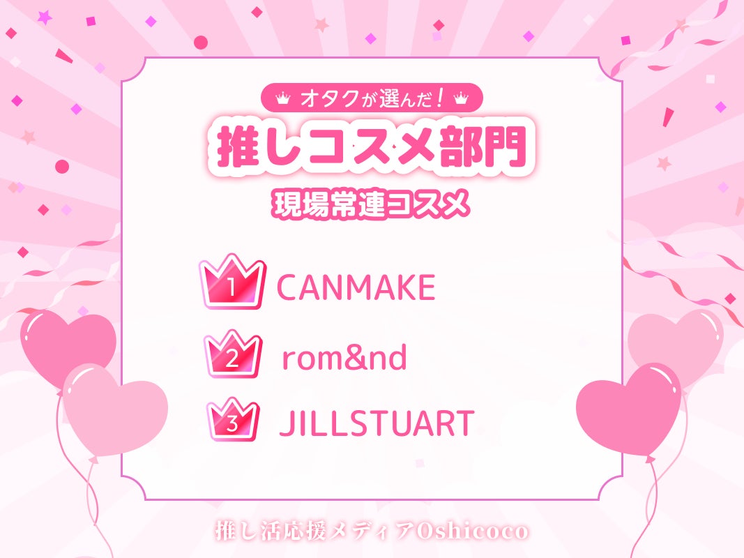 現場常連コスメ部門では、1位に「CANMAKE」2位に「rom&nd」3位に「JILLSTUART」がランクインしました。プチプラだけど、安定に使いやすくて、かわいい!そんなブランドが人気な模様です。