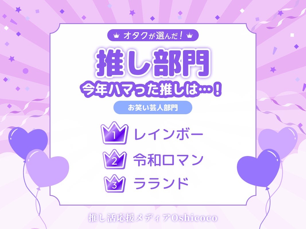お笑い芸人部門では、今年10月に実施された「キングオブコント」でも爪痕を残した「レインボー」が1位にランクインしました。レインボーのYouTubeチャンネルは170万人以上の登録者を持ち、若者を中心に人気を集めています。YouTube経由で彼らを知った人も少なくないはずです。2位には、2023年と2024年の「M-1グランプリ」で史上初の2連覇を達成した「令和ロマン」、3位には、独自のお笑いスタイルで話題の「ラランド」が入賞しました。