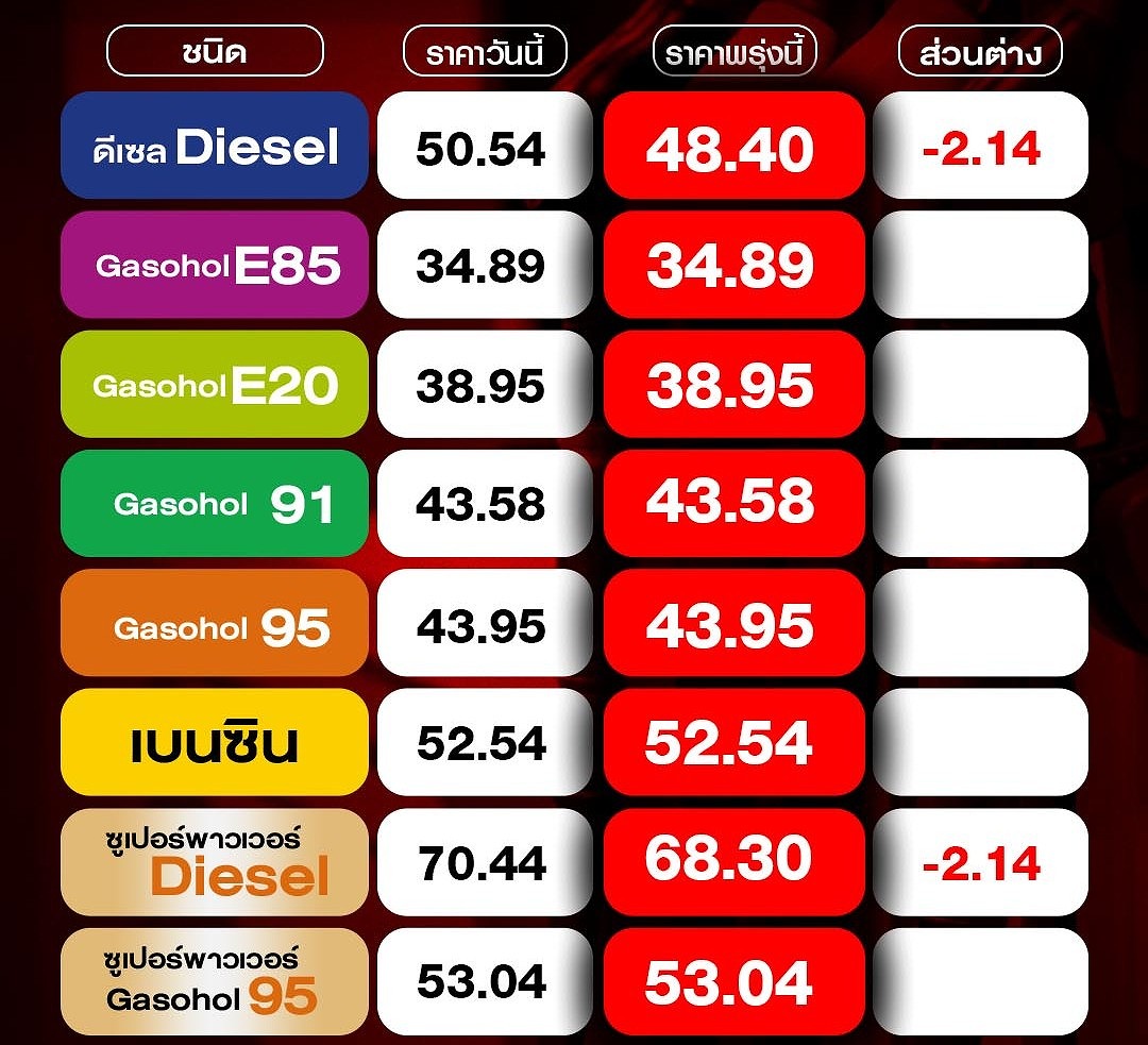 - 米イラン停戦協定とは無関係? タイ政府、軽油価格を2.14バーツ引き下げ。