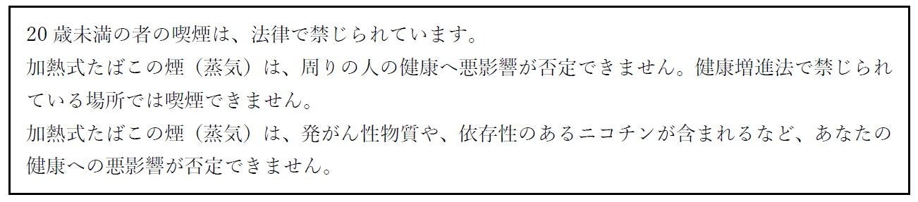 BATグループでは、たばこ製品のマーケティングを適切に実施するために国際的な自主規準を設定しています。そのため消費者に対するたばこ製品に関するすべてのコミュニケーションには、20歳未満の方へのコミュニケーションをお控えいただくとともに、「喫煙と健康に関する注意文言」を表示することを関係各位にお願いしております。加熱式たばこに関しては、記事掲載していただく際には、「健康に関する注意文言」が表示されるようご配慮いただきたく存じます。ご協力の程、何卒よろしくお願い申し上げます。