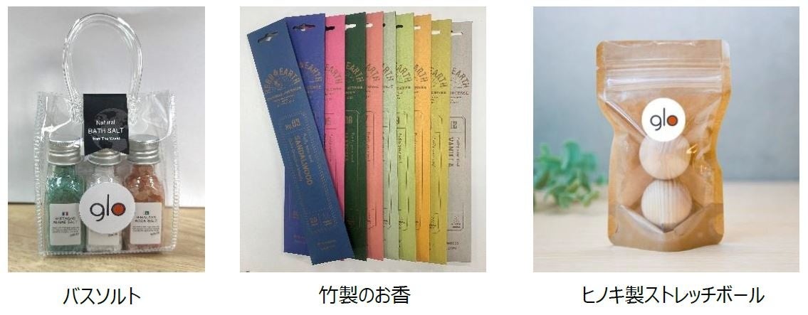 glo(TM)公式ウェブサイトの新規会員登録およびLINE公式アカウントとの新規連携を行っていただいた方を対象に、アロマの香りでリフレッシュできるバスソルトや竹製のお香、手で握ると血行がよくなるヒノキ製ストレッチボールなど、春にぴったりなリフレッシュグッズを先着プレゼントいたします。無くなり次第終了となります。