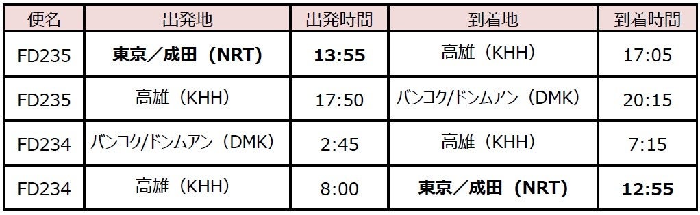 FDの高雄経由バンコク線の就航で、より充実する成田空港のネットワークをぜひご活用ください。