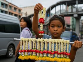なぜタイでは、道路のど真ん中で花輪が売られているのか? ある精霊にまつわる物語。