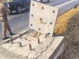 その看板、ナットがついていないかも?! 大型道路標識が倒壊、3名が負傷。ナットが全て盗難に!