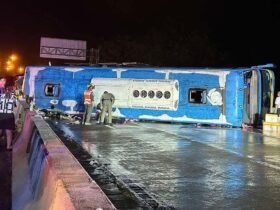 チェンマイ発バンコク行きの観光バスが峠で横転! 周囲は渋滞、外国人39名負傷・1名重体。