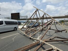 【バンコク】 4月2日、呪われた道路「ラマ2世通り」で、大型広告看板の鉄骨構造物がトラックから落下し、交通を遮断する事故が発生した。 この事故により、大規模な渋滞が発生した。 運転手によると、事故直前に積荷が歩道橋… -