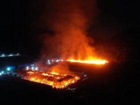 チョンブリー県の紙リサイクル工場で大規模火災。強風で延焼、夜通しの消火活動。