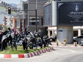 本当に追悼の気持ちをもっていないと、はき違えてしまいます。 タイ・チェンマイ市が来週に開催されるイーペン祭(ロイクラトン祭)を前に、ターペー通りの道路中央に設置したカラフルな花とイルミネーションの装飾を「黒」に塗り替え… -