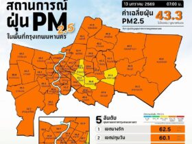 1月13日、バンコク都空気質情報センター(環境局)は、当日のPM2.5の状況を発表した。