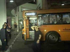 バンコク、MRTタイ文化センター駅、路線バスが消防車に衝突、11人負傷。
