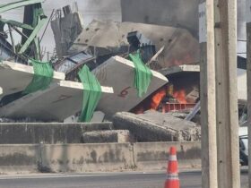 バンコク首都圏、ラマ2世通りクレーン倒壊事故現場で事故再び。火災と黒煙発生。