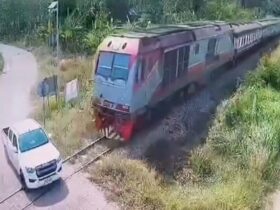 タイ南部、踏切でピックアップトラックが列車に衝突、1名死亡1名重傷。