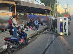 2月28日午前7時ごろ、タイ・シーラチャのモーターウェイ7号線で、ミャンマー人出稼ぎ労働者を乗せたピックアップトラックが横転し、15人が負傷した。 現場では、ピックアップ(屋根付き)が横倒しになっており、約20人が乗車… -