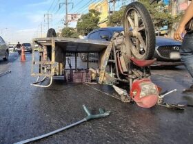 12月28日午前9時ごろ、パトゥムターニー県ランシット方面行き道路で、三輪バイク(サイドカー付きバイク)が交通事故に巻き込まれ、男性(約50歳)が死亡した。