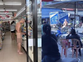 【住民騒然】タイ北部のコンビニに全裸の外国人男性現る! 直前に大麻でキメキメ。
