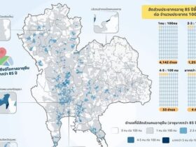タイ宇宙技術・地理情報開発機関(GISTDA)は、2025年の住民登録データを基に、郡レベルの空間分析を行い「人口100人あたり、85歳以上の高齢者が何人暮らしているのか?」という問いの分析しました。