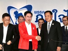 プムジャイタイ党とタイ貢献党が2月13日、共同記者会見を開き、新政権樹…