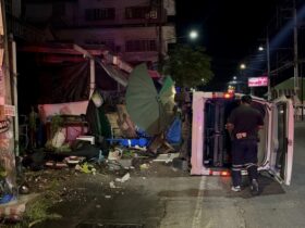 12月18日午後10時ごろ、パタヤ市ノーンプルー地区で、中国国籍の男性が運転する白色のトヨタ製バンが住宅の塀に衝突して横転するという事故が発生した。