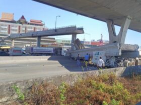 12月18日午前11時30分ごろ、サムットプラーカーン県バンナートラット通り、ナムタイ市場向かいで、走行中のトラックが歩行者用陸橋に直撃し崩壊するという事故が発生しました。